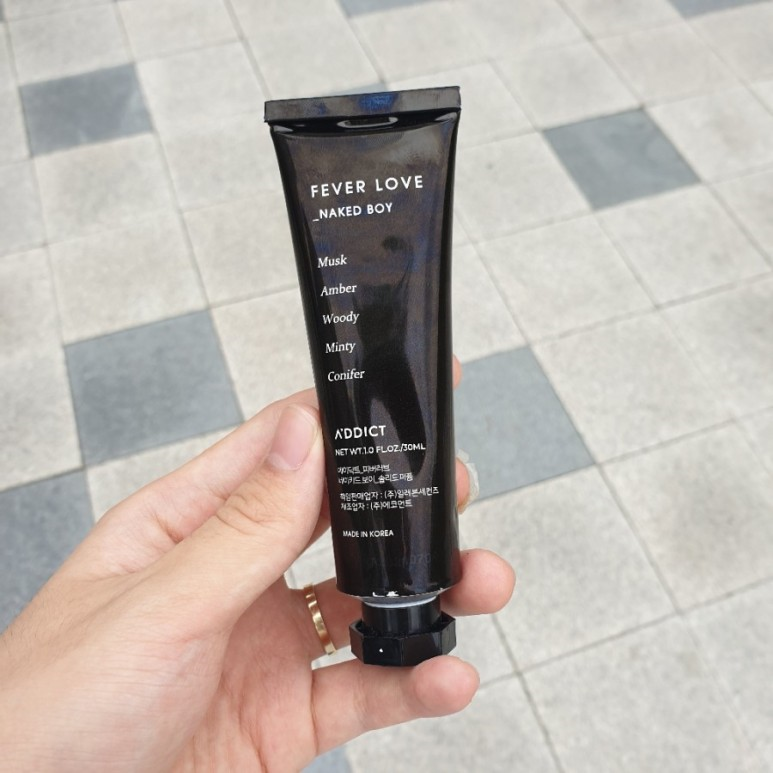 그래서 오늘 추천하는 고체향수인 에이딕트의 '피버러브 네이키드보이'는 당연히 이런 과한 향이나 아저씨 냄새가 안난다. 고체향수 특징이 냄새가 엄청 진하지 않다는 것이다. 그렇다고 냄새가 아예 안난다는 말이 아니라 막 길가다가 사람이 지나칠때 과한 향수향 때문에 기분이 안좋을 정도로 냄새가 나는 느낌이 아니라는 것이다. 그냥 딱 적당하고 깔끔한 느낌이다.
